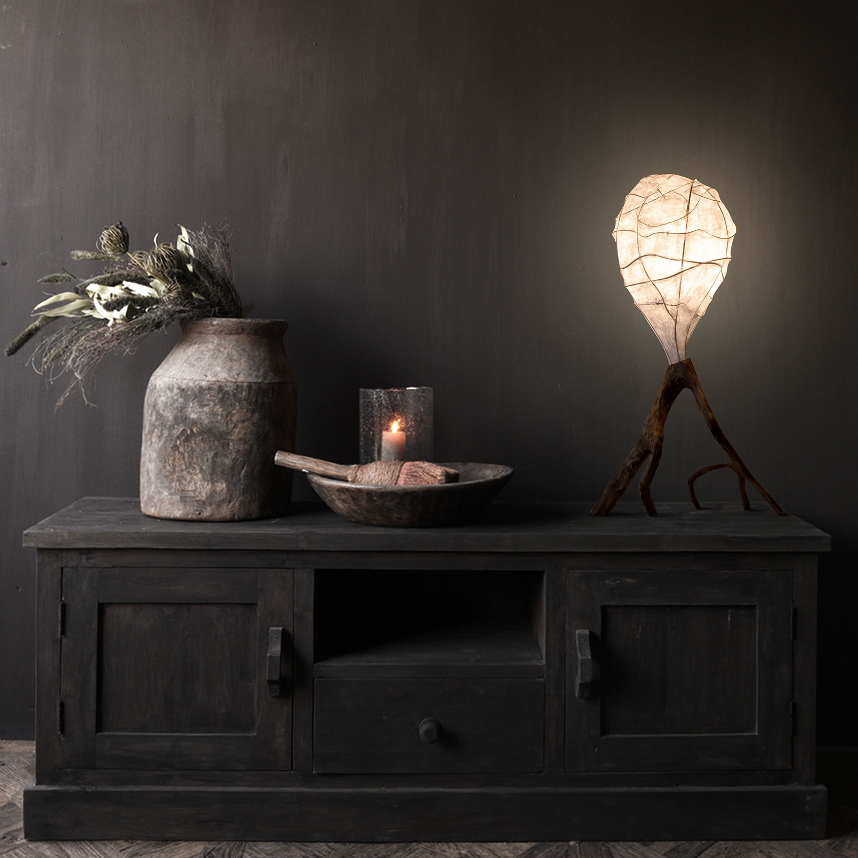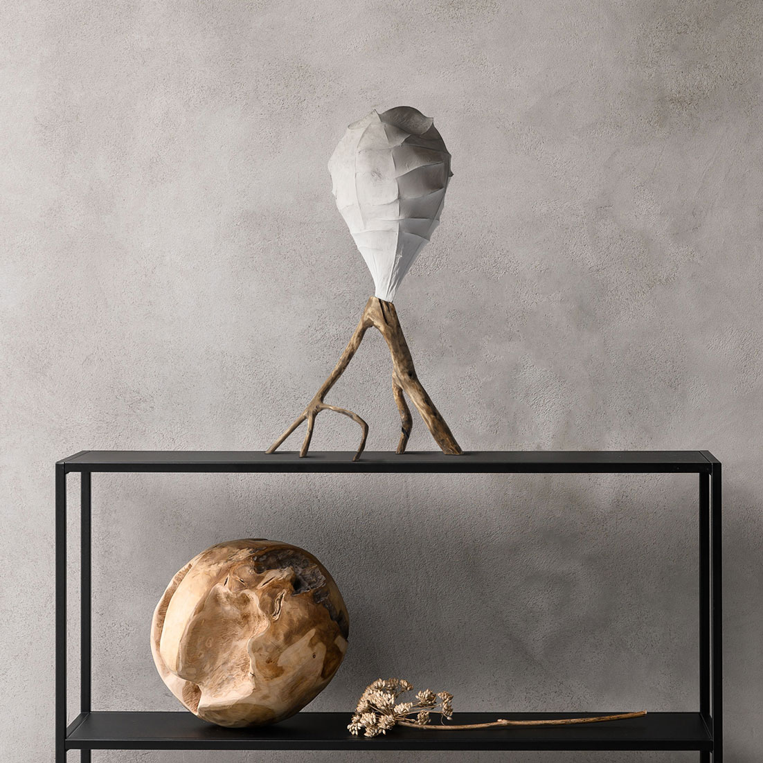 Shaped from the rebirth of weathered olive branches. This lamp, in its essence, embodies the very spirit of an orb, beckoning with its enchanting allure. Cloaked in the purest of whites, it attains this celestial visage through a harmonious dance of paper and vines, casting an ethereal glow that transports one to a realm of artistic wonderment.